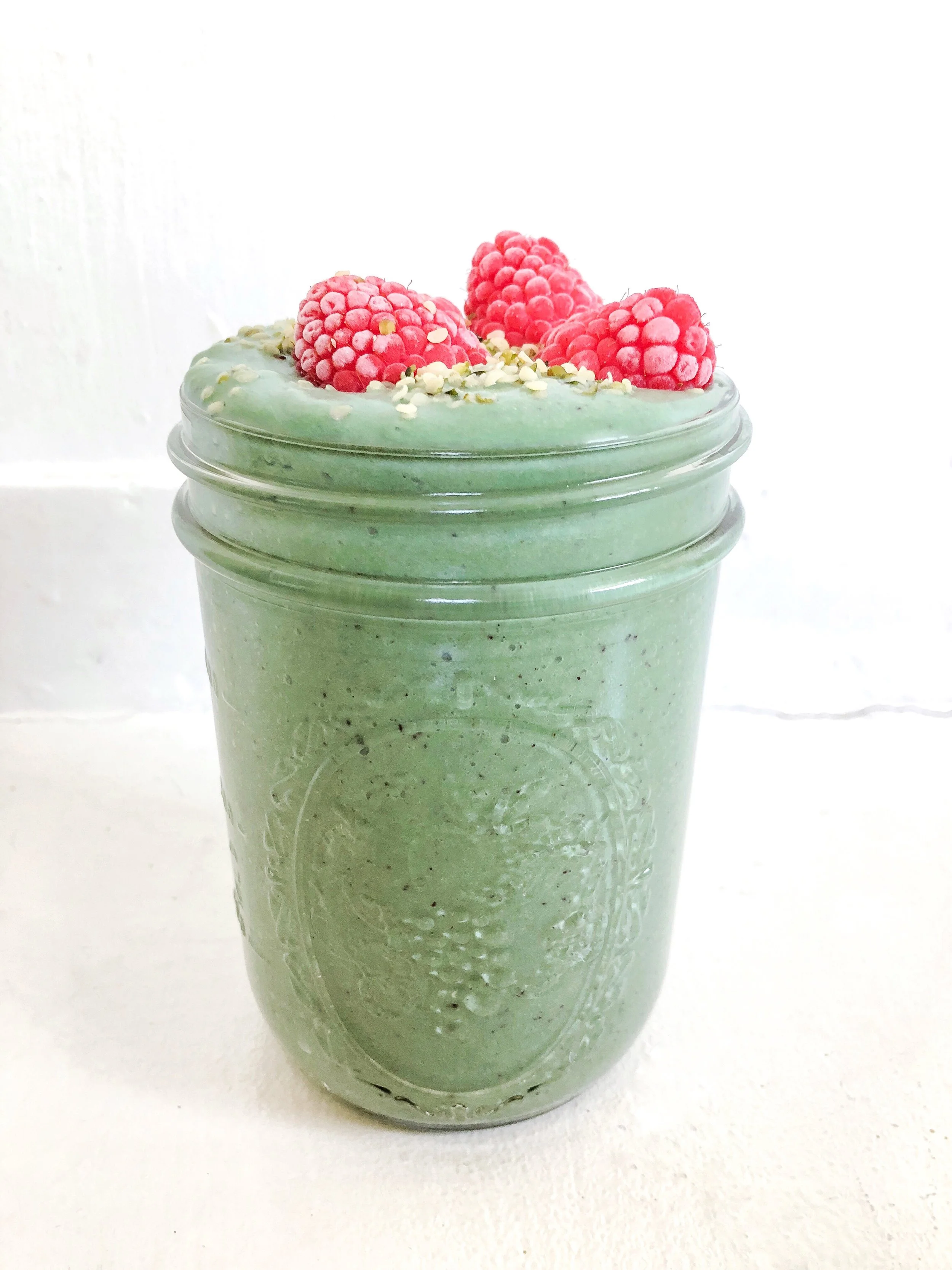 Top w/ frozen raspberries & hemp hearts