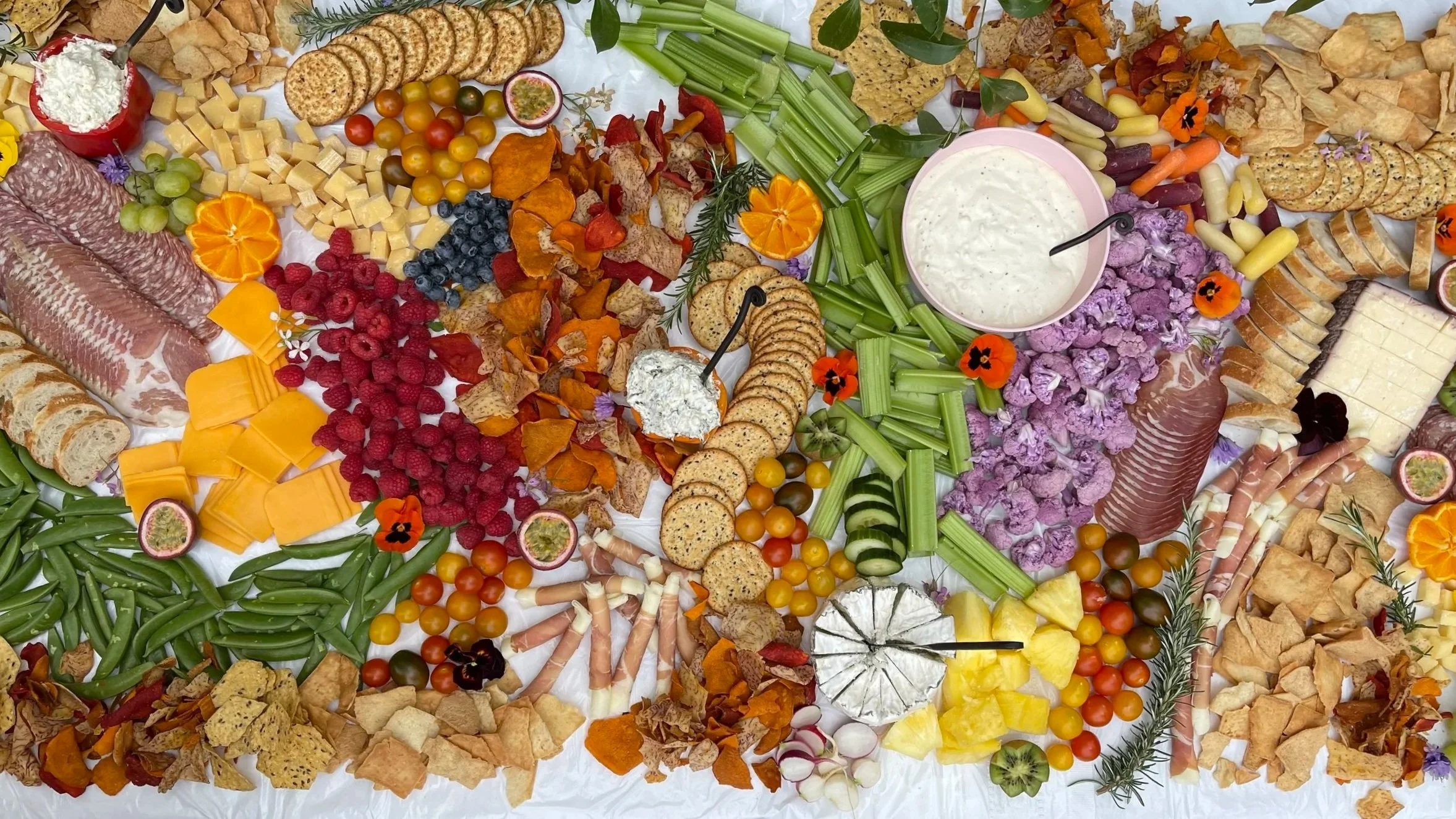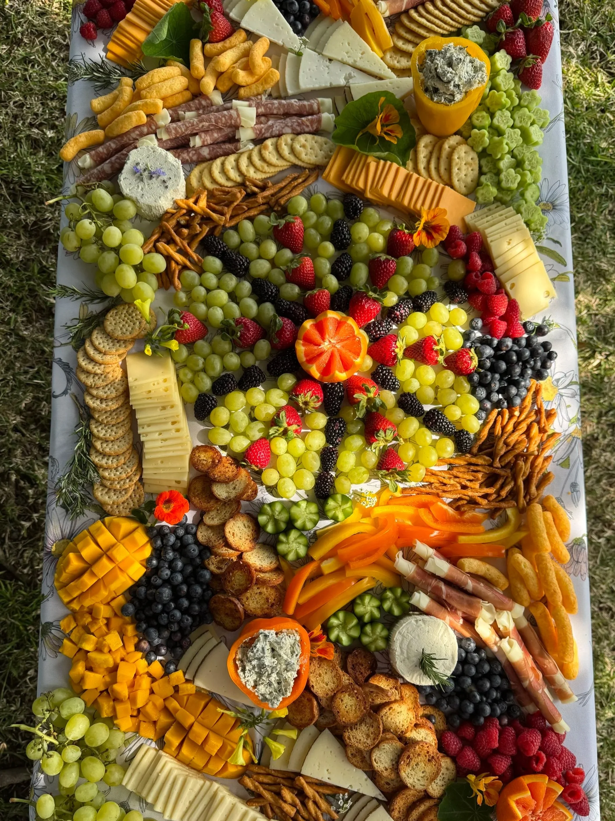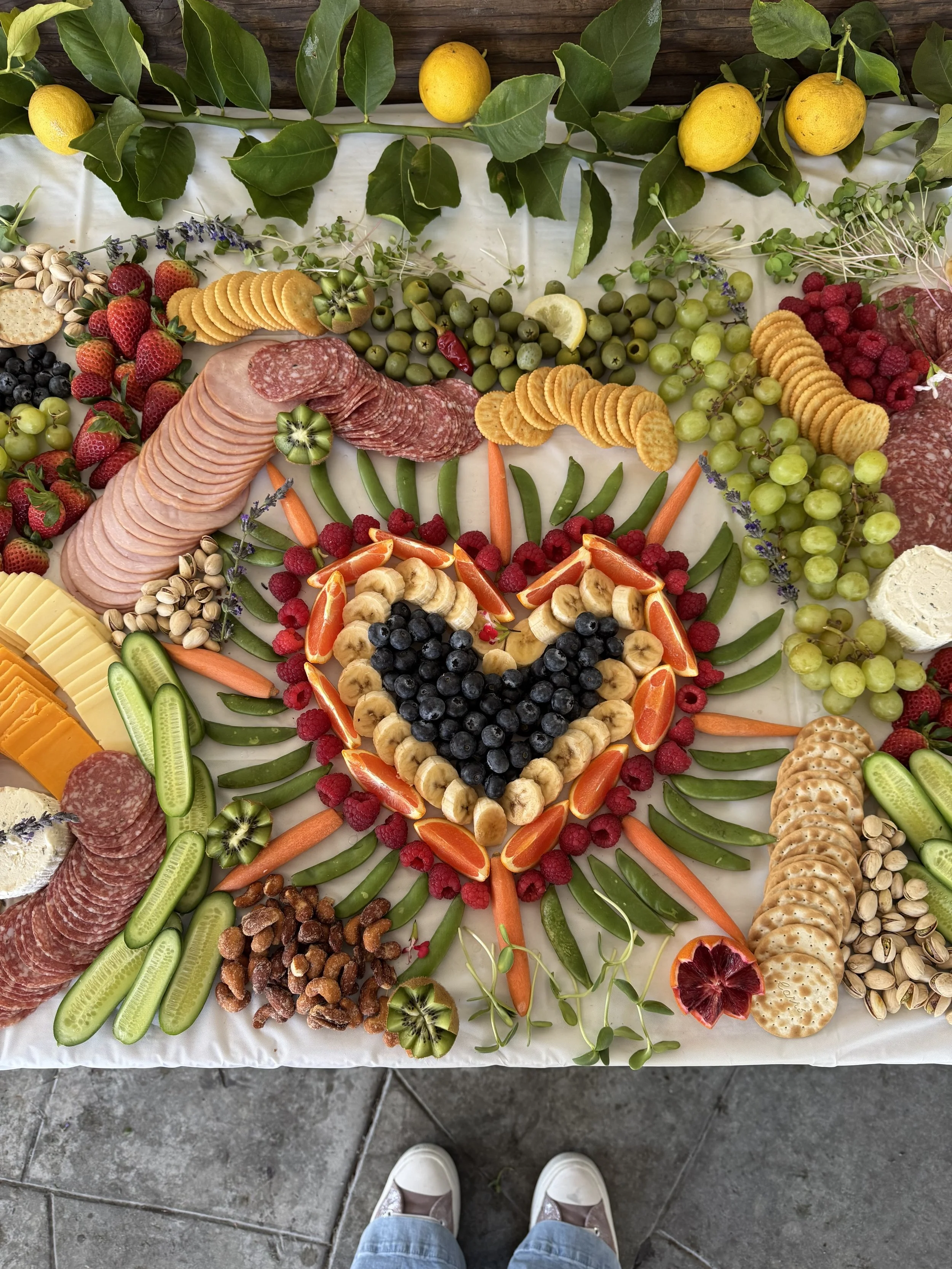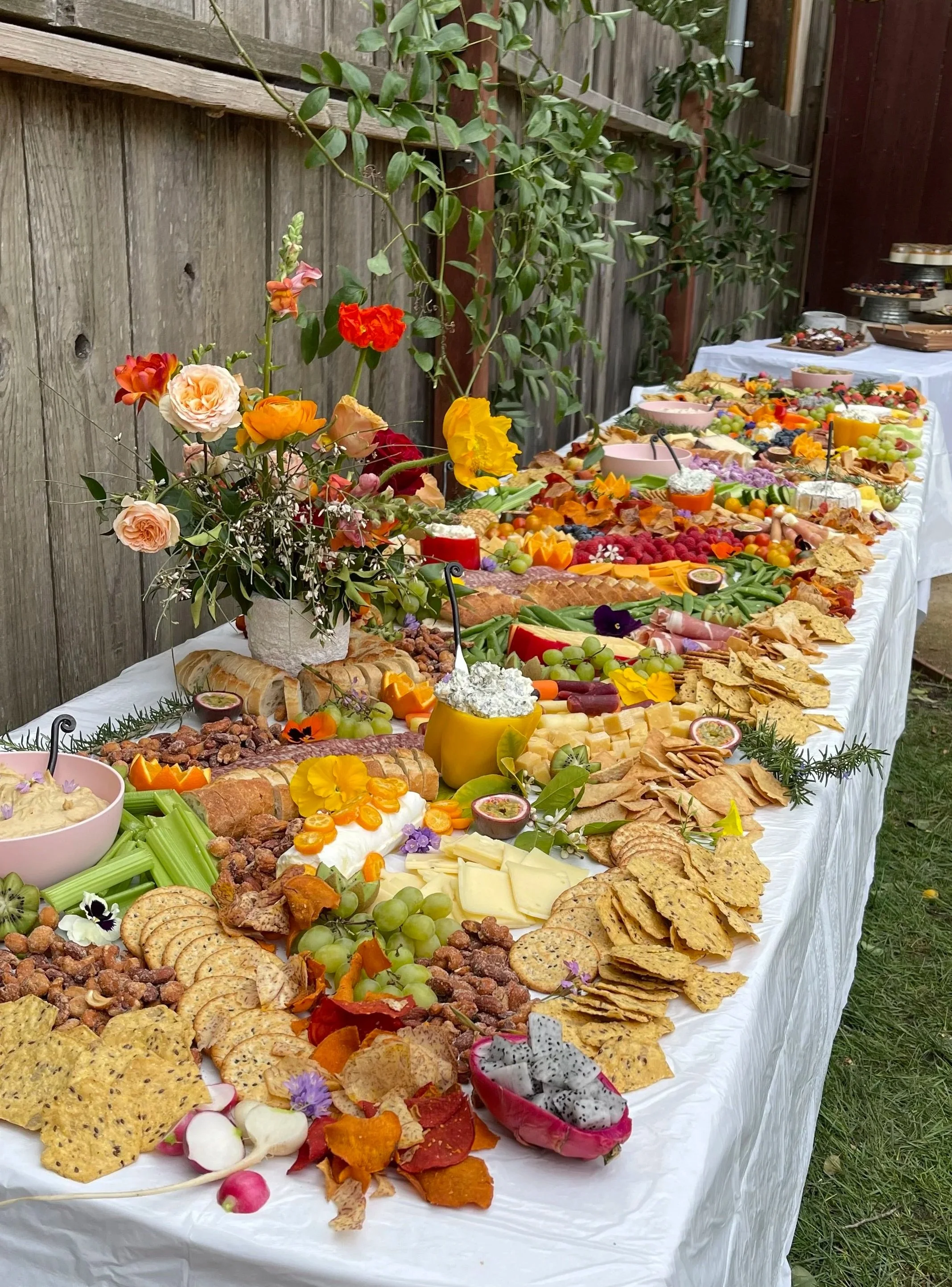 As I aim to do with all of my work, I strive to create an inclusive experience with my grazing tables as well. Whatever your vision is for your table, I will do my best to make it happen. Whether that’s including goldfish and pretzels on a grazing table for a lucky kiddo’s birthday bash, or ditching the meat and traditional cheese for a vegan’s dream grazing spread I’m game to try it all!